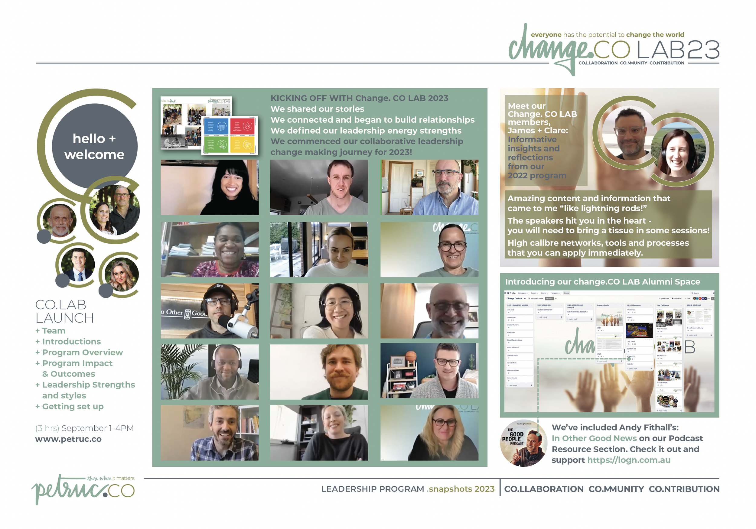 As each leader is able to draw on their learning through our program, we have provided the opportunity to also take part of our brand coaching session - and be that inspirational change CO.LABorator